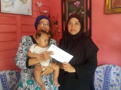 Keluarga ini menerima sumbangan daripada ServeCare Sdn Bhd dan keluarga ini boleh dihubungi melalui pegawai YBK di talian 03 7875 0036 (Alia).