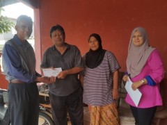 Suaminya hilang tanpa khabar berita sejak bertahun lalu dan semenjak itulah beliau tinggal bersama ibunya yang boleh menjaga anak-anaknya setelah keluar bekerja. Sumbangan ini diwakilkan kepada ibunya.